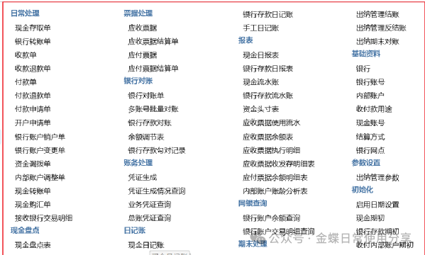 1、出纳管理【业务场景】:出纳管理系统是出纳人员的工作平台,支持企业出纳人员在系统中完成所有相关的货币资金、票据以及有价证券的收付、保管、核算等日常工作,并提供出纳管理报表查询【用户角色】:出纳【功能菜单】:【财务会计】->【出纳管理】2、业务流程【业务场景】:出纳管理系统是出纳人员的工作平台,支持企业出纳人员在系统中...