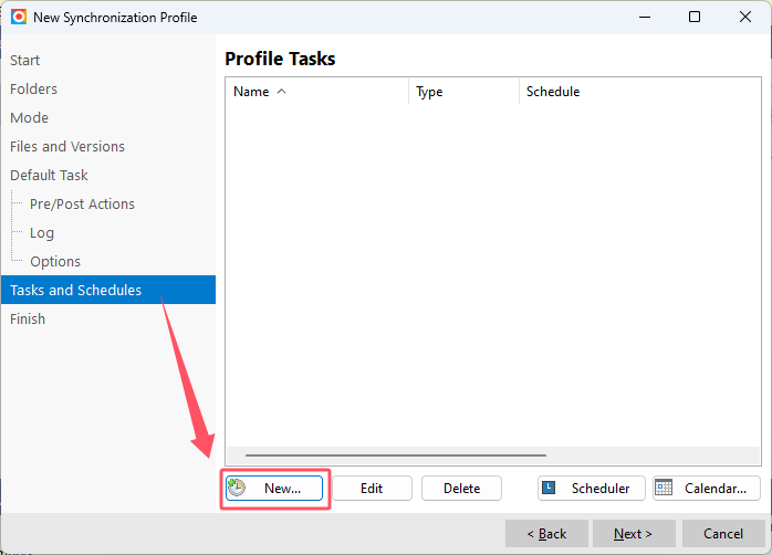 8、这个不用改,点击“Next” 9、点击“Next” 10、不用添加动作,点击“Next” 11、Log,选中“Summary”(概况即可,不需要记录详细内容),然后点击“Next” 12、什么都不用改,直接点击“Next” 13、Task and Schedules(任务和计划),点击“New...” 14、点击“Next” 同步备份时间,支持按天、周、月进行设置。 这个备份时间设置很重要,一定要确保这个时间点电脑不会关机,否则同步备份动作永远也不会执行,一般建议设置为每天中午12:30左右开始比较合适。 这里是支持设置无限多个备份触发器的,可以设置多几个同步时间,例如早上8:30、下午5:15等,可以确保尽可能将本电脑上的文件实时同步到FTP服务器上。 15、确认无误后,点击“Next” 16、点击“Finish”,就完成了同步备份设置工作,在任务列表中,就可以看到这个同步任务了: 相关教程: