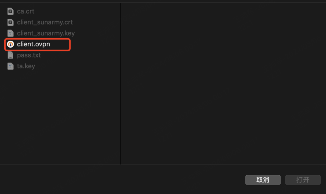 客户端证书路径:/etc/openvpn/easy-rsa/pki/issued/client.crt