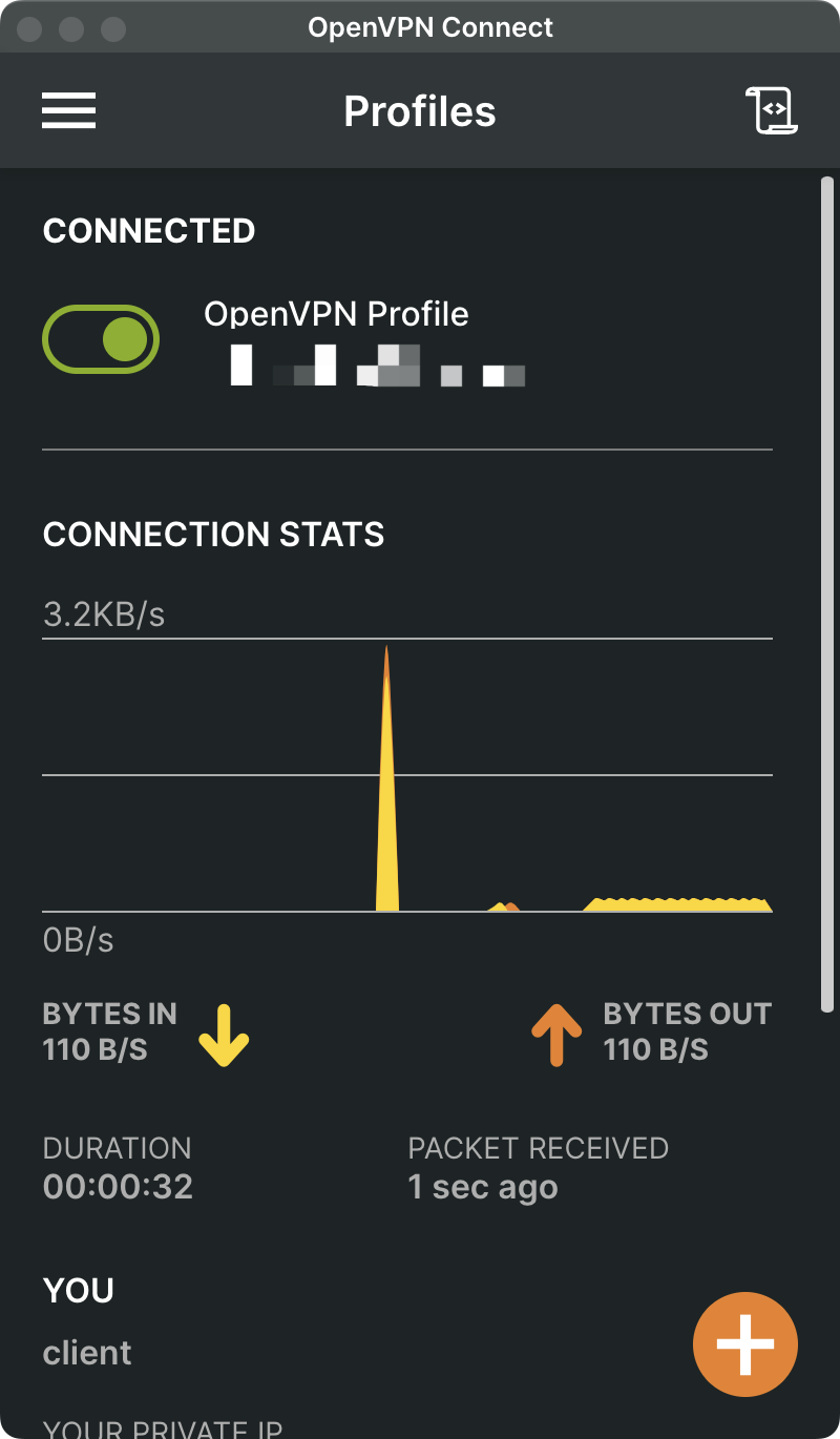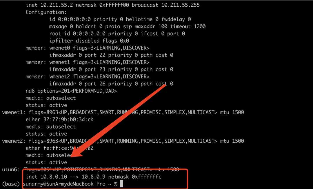 这样就连上了,观察本地IP,发现为我们也分配了一个虚拟IP