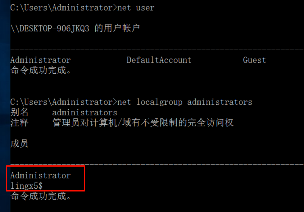 符号结尾的用户就是我们常说的影子用户(隐藏用户),对于一般的用户来说,很难发现这个用户名,即使他发现并删除了用户,在下一次关机时,我们注入的组策略还会执行,会再次创建这个用户。