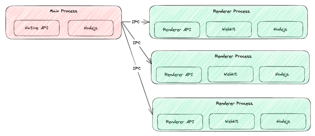 首先来看看Electron的基础架构模型:Electron继承了来自Chromium的多进程架构,Chromium始于其主进程。从主进程可以派生出渲染进程。渲染进程与浏览器窗口是一个意思。主进程保存着对渲染进程的引用,并且可以根据需要创建/删除渲染器进程。