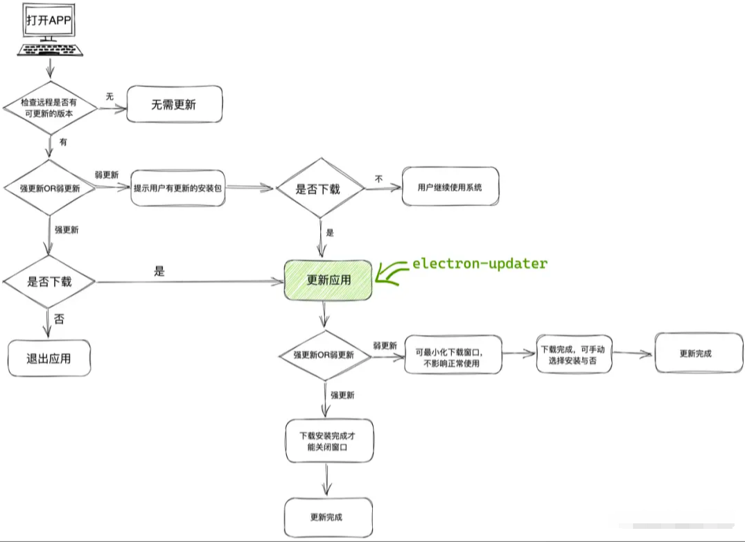 对于应用更新而言,我们之前采用的是electron-updater自动更新模式: