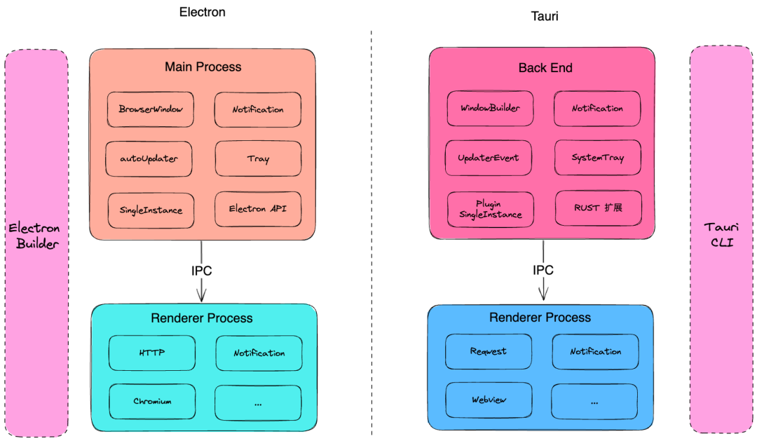 要实现Electron迁移到Tauri,得先分别了解Electron和Tauri的核心功能和架构模型,只有了解了这些,才能对整体的迁移成本做一个把控。