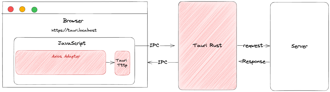 • Tauri的主进程使用Rust编写,Tauri在主进程中提供了一些常用的Rust API比如窗口创建、消息提醒... 如果我们觉得主进程提供的API不够,那么我们可以通过Tauri的插件体系自行扩展。
