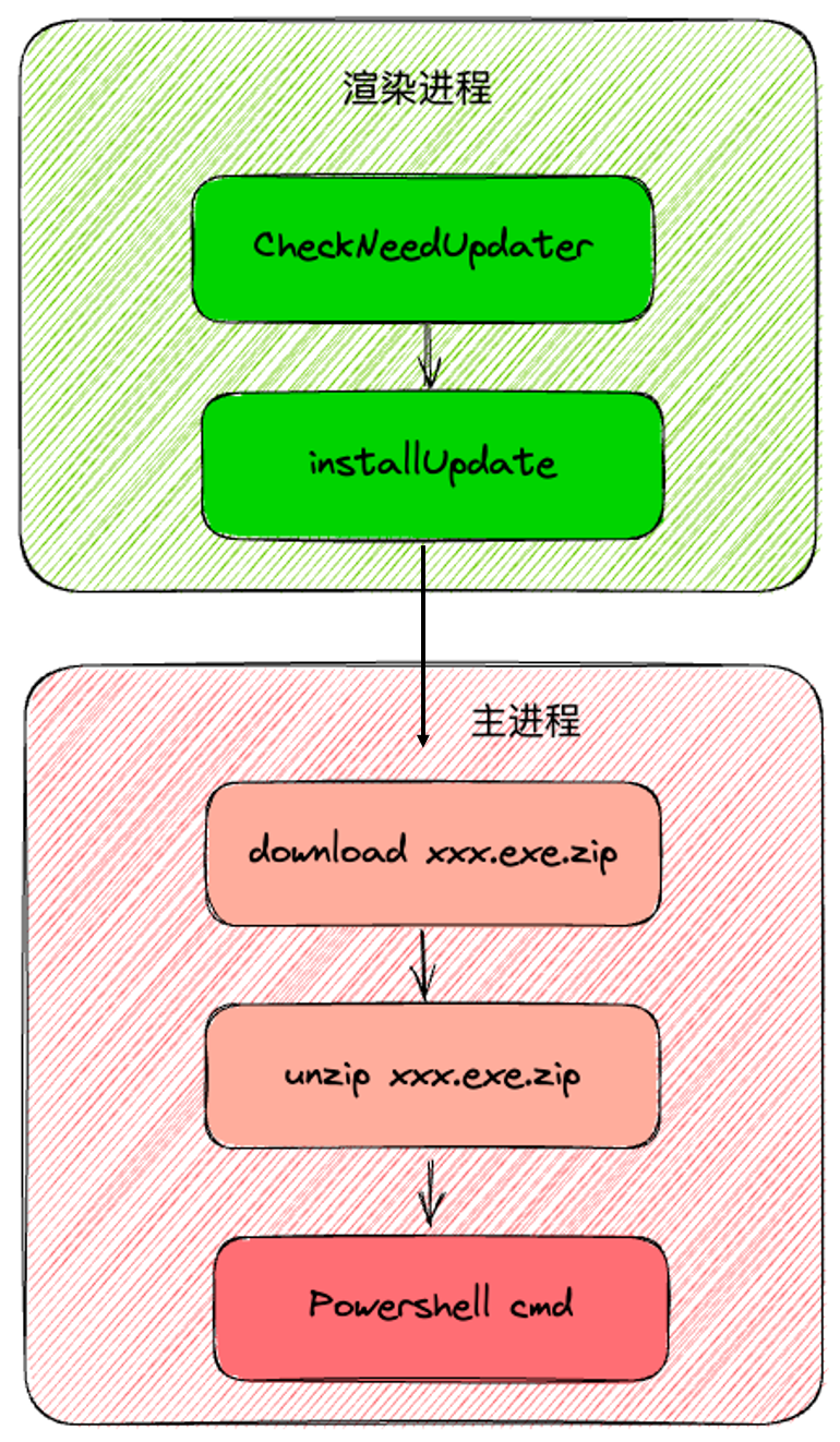 • 对于需要更新的应用,可以在渲染进程通过JS调用 installUpdate() API