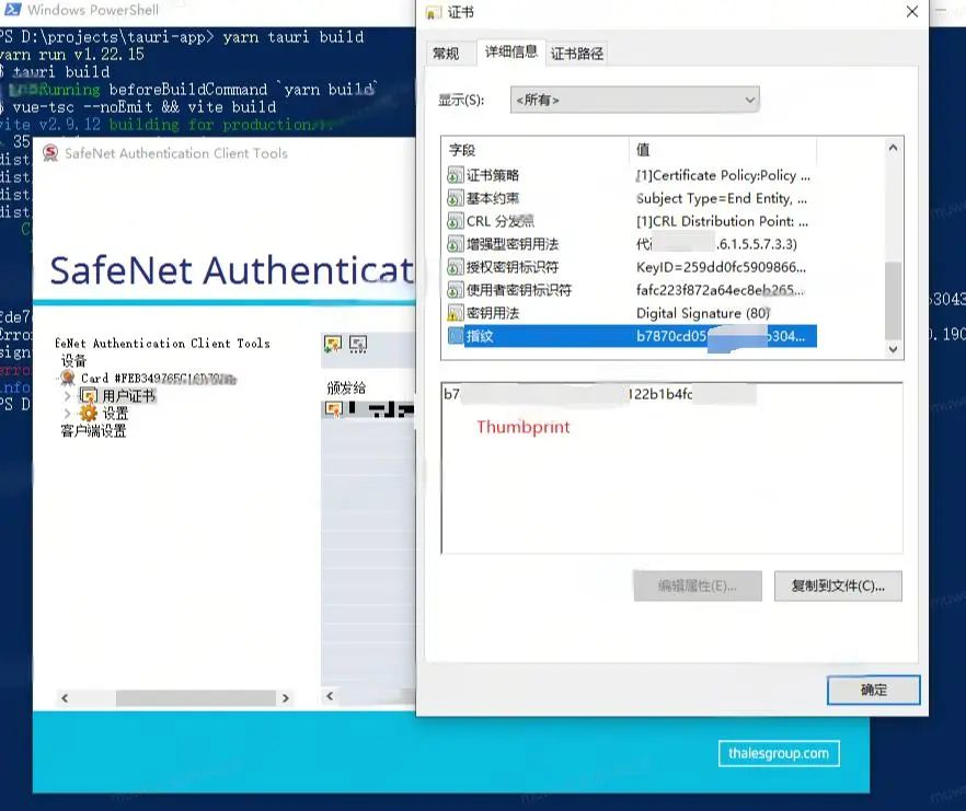 如果你按照官方的步骤来进行签名:https://v1.tauri.app/zh-cn/v1/guides/distribution/sign-windows/,很快就会发现问题所在:官网中签名有一个重要的步骤就是导出一个.pfx文件,但是现在业界签名工具基本上都是采用签名狗的方式进行的,这是一个类似于U盾签名工具,需要插入电脑中才可以进行签名,不支持直接导出.pfx格式的文件: