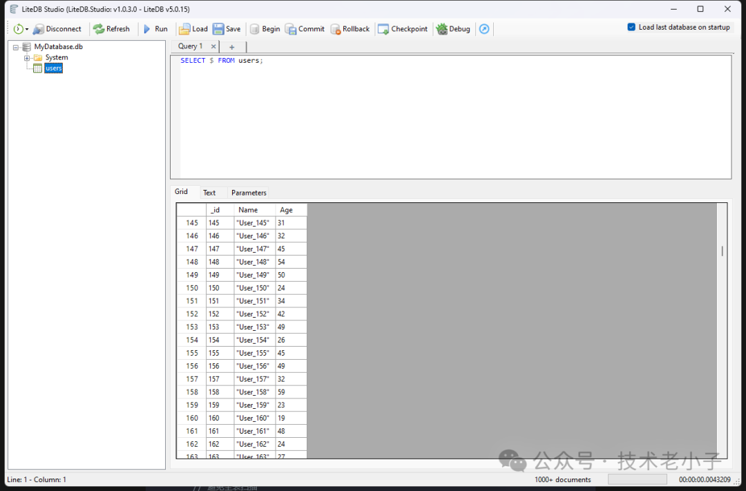 publicclassCollectionManagement { publicvoidBasicCollectionOperations() { // 创建或打开数据库 using (var db = new LiteDatabase(@"MyDatabase.db")) { // 获取或创建集合(类似于表) var users = db.GetCollection<User>("users");