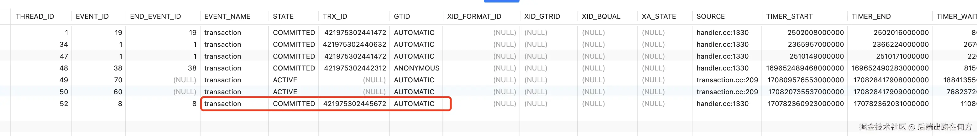 SELECT * FROM performance_schema.events_transactions_current;