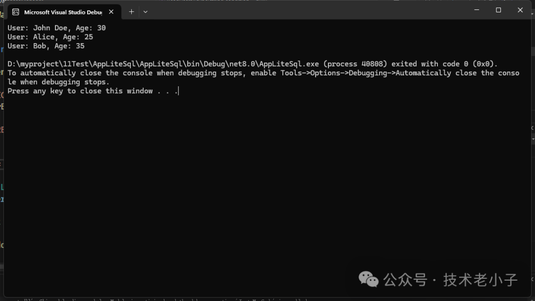 Console.WriteLine($"User: {user.Name}, Age: {user.Age}");
