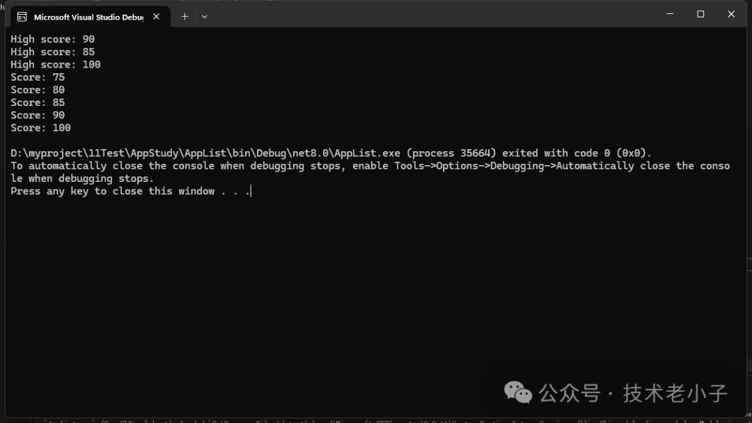 namespace AppList { publicclassStudent { publicstring Name { get; set; } publicint Score { get; set; } } internal classProgram { staticvoidMain(string[] args) { // 创建学生列表 List<Student> students = new List<Student> { new Student { Name = "Alice", Score = 95 }, new Student { Name = "Bob", Score = 85 }, new Student { Name = "Charlie", Score = 90 } }; // 查找成绩最高的学生 var topStudent = students.OrderByDescending(s => s.Score).First(); // 计算平均分 var averageScore = students.Average(s => s.Score); // 找出及格的学生 var passedStudents = students.FindAll(s => s.Score >= 60); Console.WriteLine($"最高分学生:{topStudent.Name},成绩:{topStudent.Score}"); Console.WriteLine($"平均分:{averageScore}"); Console.WriteLine("及格学生:"); foreach (var student in passedStudents) { Console.WriteLine($"{student.Name},成绩:{student.Score}"); } } } }