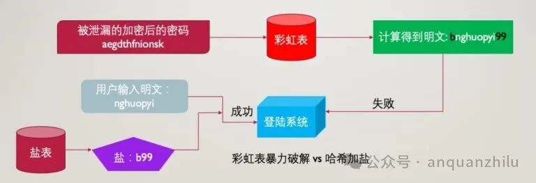 当数据库中的哈希值与彩虹表中的记录匹配时,密码就被破解,攻击者获得了身份验证能力,系统安全形同虚设。