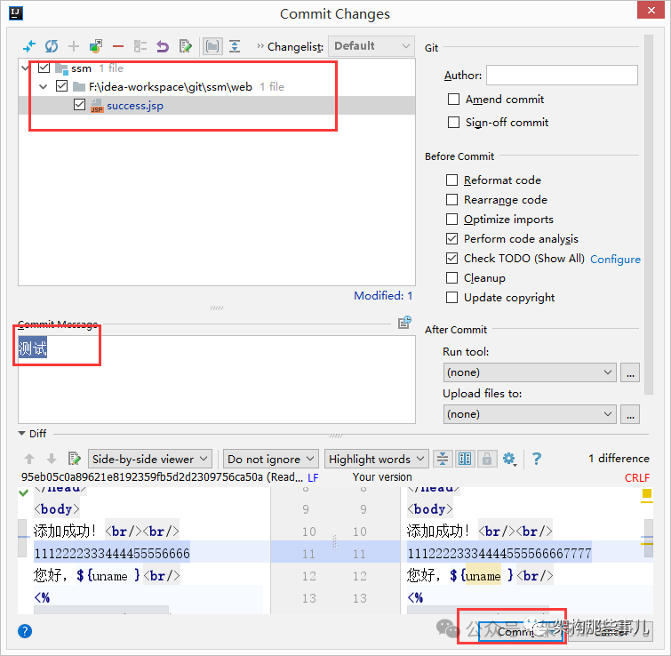2、创建分支点击【new branch】,弹出窗口,如下图: 输入分支名称点【OK】,然后默认切换到该分支。 3、切换分支如果要切换回master主分支,操作如下图: 点击【checkout】 4、在新建立的分支上修改代码切换到之前新创建的分支,修改代码。 5、提交分支到本地库一般情况下只需要将分支提交到本地仓库,不需要将分支提交远程仓库。如果将所有的分支都提交到远程仓库,会让远程仓库杂乱无章。 确保在新建分支下,操作如下图: 弹出新窗口,如下图: 选择要提交的文件,写上提交注释,然后点击【commit】