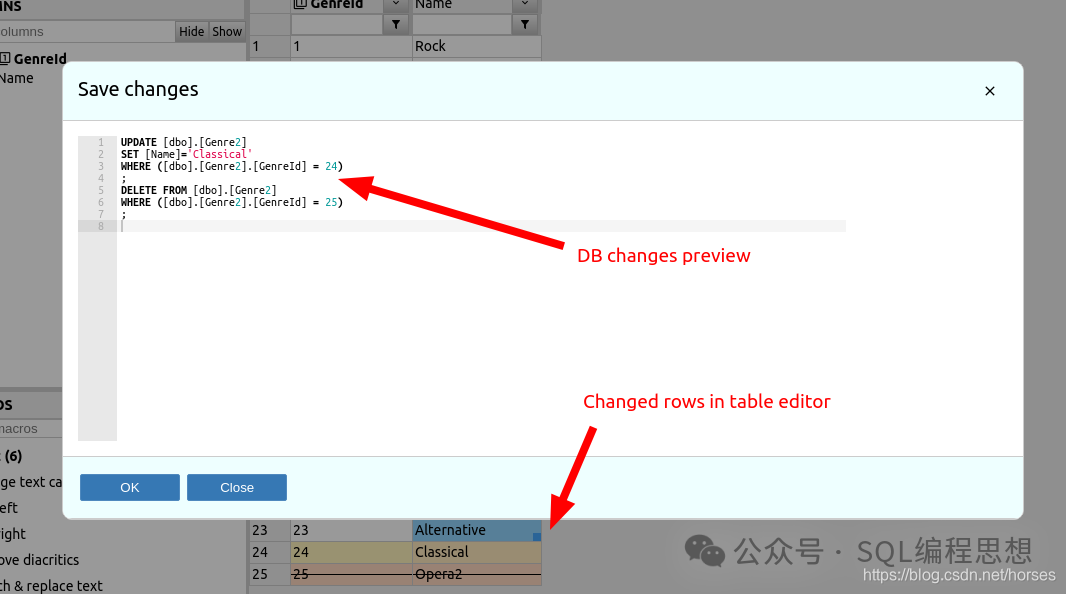 DbGate 数据编辑器提供了类似于 Excel 的数据编辑功能,用户可以编辑数据并预览相应的 SQL 语句,然后使用 Ctrl+S 或者菜单命令保存数据。