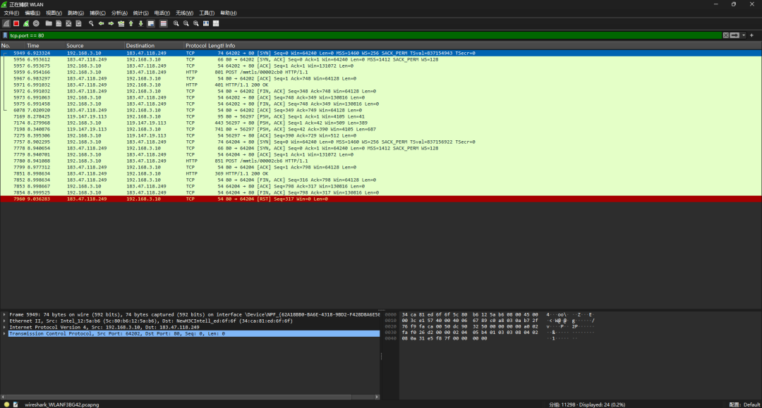 3. 加过滤:想只看网页流量?输入tcp.port == 80,回车,HTTP数据包秒现身!