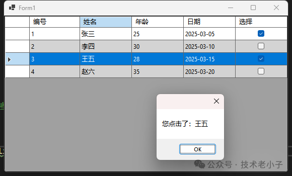 dt.Rows.Add(4, "赵六", 35, DateTime.Now.AddDays(5));