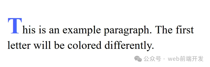 我们可以使用 ::first-letter 伪元素更改文本首字母的颜色。