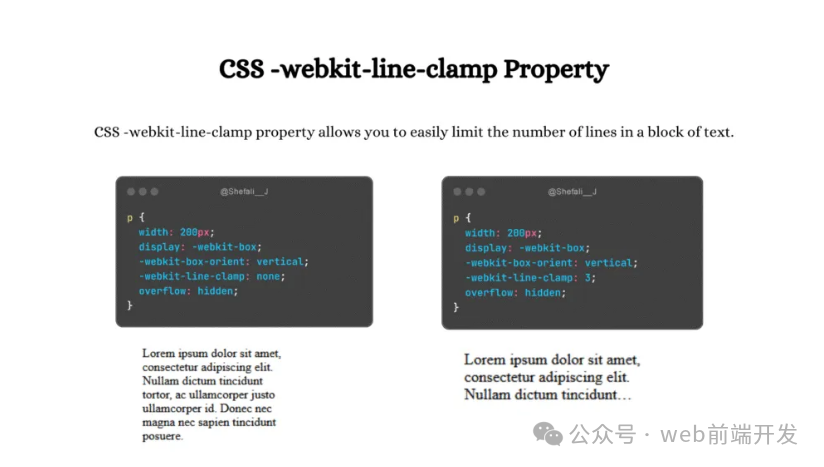 当我们想在不依赖 JavaScript 的情况下将文本限制在固定行数内时,此功能尤其有用。