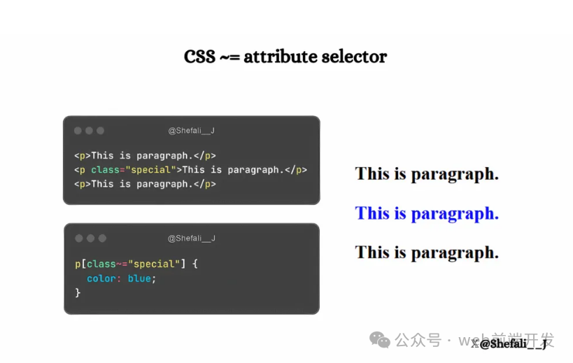 现在,我们可能想知道 ~= 选择器和直接使用类名 .special 选择元素之间有什么区别。