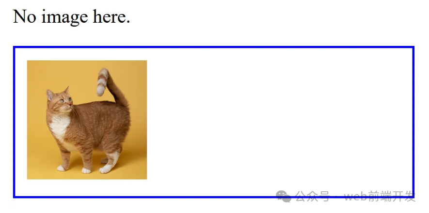 <meta name="viewport" content="width=device-width, initial-scale=1.0" /> <title>:has() Pseudo-Class</title> <style> .card:has(img) { padding: 10px; border: 2px solid blue; } </style> </head> <body> <div class="card"> <p>No image here.</p> </div> <div class="card"> <img src="cat.jpg" alt="Cat Image" />