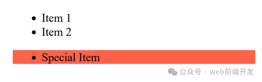 第二个 <ul> 将被设置样式,因为它包含一个带有 special 类的 <li>。