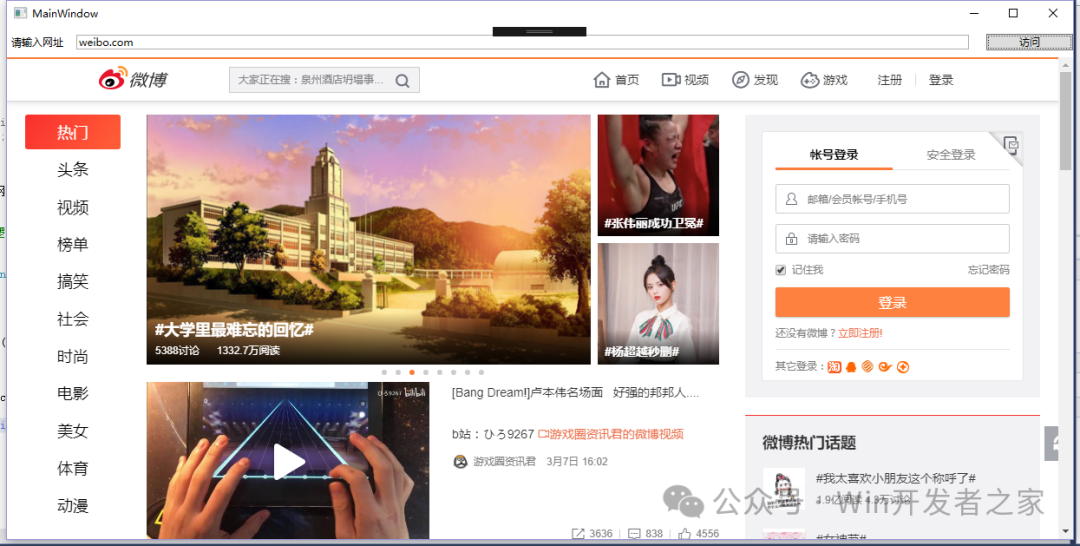 使用CEF无法确定一个网站是否已经完全加载完成,我们只能在它每一次加载完成时,处理它的页面源码。 如果需要主动等待网站加载完成,可以试试使用Selenium https://www.cnblogs.com/zhaotianff/p/11330810.html 比如打开weibo.com时,会获取到多次页面源码,结果如下(这里只贴出前面两次的结果): 获取到源码以后可以使用HtmlAgilityPack、AngleSharp等解析库来解析HTML,也可以使用CEF执行js实现同样的功能 调用ChromiumWebBrowser.EvaluateScriptAsync函数就可以执行js,函数返回值可以获取到js执行的结果。 示例代码 https://files-cdn.cnblogs.com/files/zhaotianff/CEFSharpDemo.zip 阅读原文:原文链接 该文章在 2025/6/26 21:52:23 编辑过 |