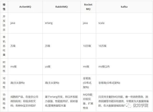 Kafka、RocketMQ、RabbitMQ的优劣势比较