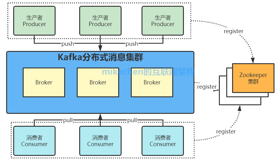 之前我就讲过消息中间件那真的是太重要了,那就是亿级互联网架构的基石,实在是太重要了,当然这肯定也是大厂必备技能了。 很多同学留言给我:学哪个消息中间件?那肯定是学主流中间件,比如:Kafka、RocketMQ,本篇就先来谈谈Kafka的底层架构以及实现原理。 希望本篇,对你掌握好消息中间件有所帮助@mikechen Kafka核心架构 它的架构包括以下组件: 1、话题(Topic):是特定类型的消息流。消息是字节的有效负载(Payload),话题是消息的分类名; 2、生产者(Producer):是能够发布消息到话题的任何对象; 3、服务代理(Broker):已发布的消息保存在一组服务器中,它们被称为代理(Broker)或Kafka集群; 4、消费者(Consumer):可以订阅一个或多个话题,并从Broker拉数据,从而消费这些已发布的消息; 上图中可以看出,生产者将数据发送到Broker代理,Broker代理有多个话题topic,消费者从Broker获取数据。 Kafka原理机制我们将消息的发布(publish)称作 producer,将消息的订阅(subscribe)表述为 consumer,将中间的存储阵列称作 broker(代理),这样就可以大致描绘出这样一个场面: 生产者将数据生产出来,交给 broker 进行存储,消费者需要消费数据了,就从broker中去拿出数据来,然后完成一系列对数据的处理操作。 多个 broker 协同合作,producer 和 consumer 部署在各个业务逻辑中被频繁的调用,三者通过 zookeeper管理协调请求和转发,这样一个高性能的分布式消息发布订阅系统就完成了。 图上有个细节需要注意,producer 到 broker 的过程是 push,也就是有数据就推送到 broker,而 consumer 到 broker 的过程是 pull,是通过 consumer 主动去拉数据的。 Zookeeper在kafka的作用(1)无论是kafka集群,还是producer和consumer都依赖于zookeeper来保证系统可用性集群保存一些meta信息。 (2)Kafka使用zookeeper作为其分布式协调框架,很好的将消息生产、消息存储、消息消费的过程结合在一起。 (3)同时借助zookeeper,kafka能够生产者、消费者和broker在内的所以组件在无状态的情况下,建立起生产者和消费者的订阅关系,并实现生产者与消费者的负载均衡。 Kafka的特性1.高吞吐量、低延迟 kafka每秒可以处理几十万条消息,它的延迟最低只有几毫秒,每个topic可以分多个partition, consumer group 对partition进行consume操作。 2.可扩展性 kafka集群支持热扩展 3.持久性、可靠性 消息被持久化到本地磁盘,并且支持数据备份防止数据丢失 4.容错性 允许集群中节点失败(若副本数量为n,则允许n-1个节点失败) 5.高并发 支持数千个客户端同时读写 Kafka的应用场景1.日志收集 一个公司可以用Kafka可以收集各种服务的log,通过kafka以统一接口服务的方式开放给各种consumer,例如hadoop、Hbase、Solr等。 2.消息系统 解耦和生产者和消费者、缓存消息等。 3.用户活动跟踪 Kafka经常被用来记录web用户或者app用户的各种活动,如浏览网页、搜索、点击等活动,这些活动信息被各个服务器发布到kafka的topic中,然后订阅者通过订阅这些topic来做实时的监控分析,或者装载到hadoop、数据仓库中做离线分析和挖掘。 4.运营指标 Kafka也经常用来记录运营监控数据。包括收集各种分布式应用的数据,生产各种操作的集中反馈,比如报警和报告。 5.流式处理 比如spark streaming和storm 阅读原文:原文链接 该文章在 2025/7/2 0:07:38 编辑过 |