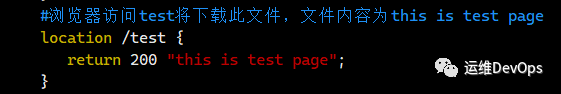 本例子中使用Nginx和Jenkins来作为演示,他们都部署在同一台机器上,端口分别为80和80801.1、下面例子使用第一种参数将url永久重定向到jenkins页面,如图:注意:return后面的http地址结尾有没有”/”都没关系,因为只要匹配了路径/jenkins就会请求过来接下来通过http://10.9.2.247/jenkins来请求,可以看到已经重定向到jenkins页面,如图:1.2 、下面例子是使用第二种参数将url重定向到百度页面,如图:此时通过浏览器访问http://10.9.2.247/url/ 将重定向到百度页面,查看返回状态码,如图:1.3、下面例子是使用第三种参数,返回状态码和文本,如图:通过浏览器访问http://10.9.2.247/test 将下载test文件,查看此文件内容如下:注意:return后面只有是200的时候才会下载,其余的不会return在server和if中用法基本差不多,不再过多演示