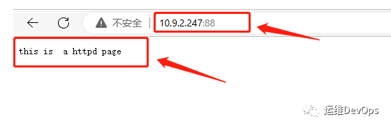 演示例子之前我们先通过yum安装一个httpd,然后修改端口为88,并修改默认界面内容如下:vim /var/www/html/index.html #this is a httpd pag