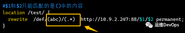 上图中的rewrite有两个括号内容,那么将分别对应$1和$2,因此实际请求将匹配到http://10.9.2.247:88/abc/abc.html