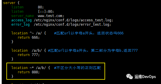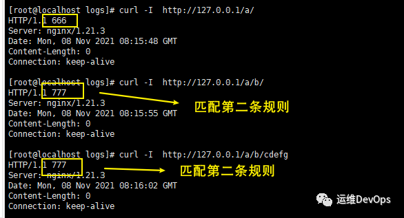 当最长规则是通过普通匹配的时候,将会继续正则匹配, 只要有一个正则成功,则使用这个正则的location,停止继续匹配,返回结果 现在将第二条规则改为普通匹配,并添加一条正则匹配,如图: 再次执行同样的请求命令,得到的状态码如下: 说明:从上图可以看出请求/a/b/的时候,首先会到达第二条规则(最长规则),由于第二条规则为普通匹配(不是^~匹配),因此会继续去匹配正则,也就是第三条规则,因此最终返回状态码为888 4、通过"~*"方式实现匹配: ” ~* ” 表示不区分大小写的正则匹配 例如:通过url请求/a/b/或者/A/B/,查看返回状态码,如图: 请求结果如下: 从上图可以看出,无论匹配的是大写还是小写,都会返回对应状态码888 常用方法还有匹配图片后缀,并返回指定信息,如图: 5、”!~*” 和”!~” 不常用,再次不做介绍 6、通过”/” 实现通用匹配: 本例子中,9091服务为httpd 第一种情况:proxy_pass最后面没有斜杠,匹配路径有斜杠(/bbb/),如图: 说明:proxy_pass最后面没有斜杠”/”,此时通过浏览器请求http://10.9.2.248/bbb/,那么实际访问的地址就是 http://10.9.2.248:9091/bbb/,会将匹配路径/bbb一起加过去 此时如果在http的目录页面目录htdocs中创建目录bbb,在bbb目录下创建文件index.html,然后即可实现正常访问,如图: 第二种情况: proxy_pass最后面有斜杠 “/”,匹配路径也有斜杠(/bbb/),如图: 说明:proxy_pass最后面有斜杠”/”,此时通过浏览器请求http://10.9.2.248/bbb/,那么实际访问的地址就是 http://10.9.2.248:9091,会将/bbb抛弃的,如图: 第三种情况:proxy_pass后面还有其他路径但是最后没有 “/”, 匹配路径也有斜杠(/bbb/) ,如图: 说明,此时通过浏览器访问http://10.9.2.248/bbb/index.html,实际请求的是http://10.9.2.248/cxxindex.html(注意位置是默认路径下,不是ccc路径下,如果proxy_pass的路径为/ccc/ddd,那么实际请求的就是ccc路径下的cccindex.html) 在httpd的默认路径下(htdocs)创建文件cxxindex.html,然后访问,如图: 第四种情况: proxy_pass后面还有其他路径但是最后有 “/”, 匹配路径也有斜杠(/bbb/) ,如图: 说明:此时通过浏览器访问:http://10.9.2.248/bbb/index.html,实际访问的是http://10.9.2.248/ccc/index.html 在httpd默认路径下(htdocs)创建一个名称为ccc的文件夹,在内部定义一个index.html,然后访问,如图: 第五种情况:location匹配路径末尾没有 “/”,proxy_pass后面也没有”/”,如图: 说明:8081端口为httpd的服务器端口,如果匹配路径和proxy_pass后都没有”/”,那么此时访问http://10.9.2.248/bbb,默认将请求到http://127.0.0.1:8081/bbb/index.html的内容,此时在httpd默认路径htdocs下创建文件夹bbb,内部创建index.html,定义内容为:i am match bbb,通过IP请求如图: 更多内容参考链接地址:https://www.ywdevops.cn/index.php/2021/11/08/nginx-5/ 阅读原文:原文链接 该文章在 2025/7/1 23:22:45 编辑过 |
