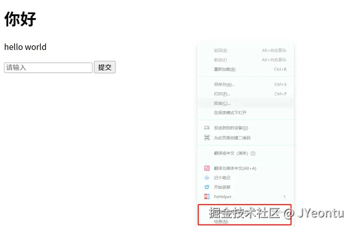 在页面上点击鼠标右键我们可以看到有个 检查 选项,通过这个菜单可以直接打开控制台,我们可以直接在这个页面上禁用右键菜单。