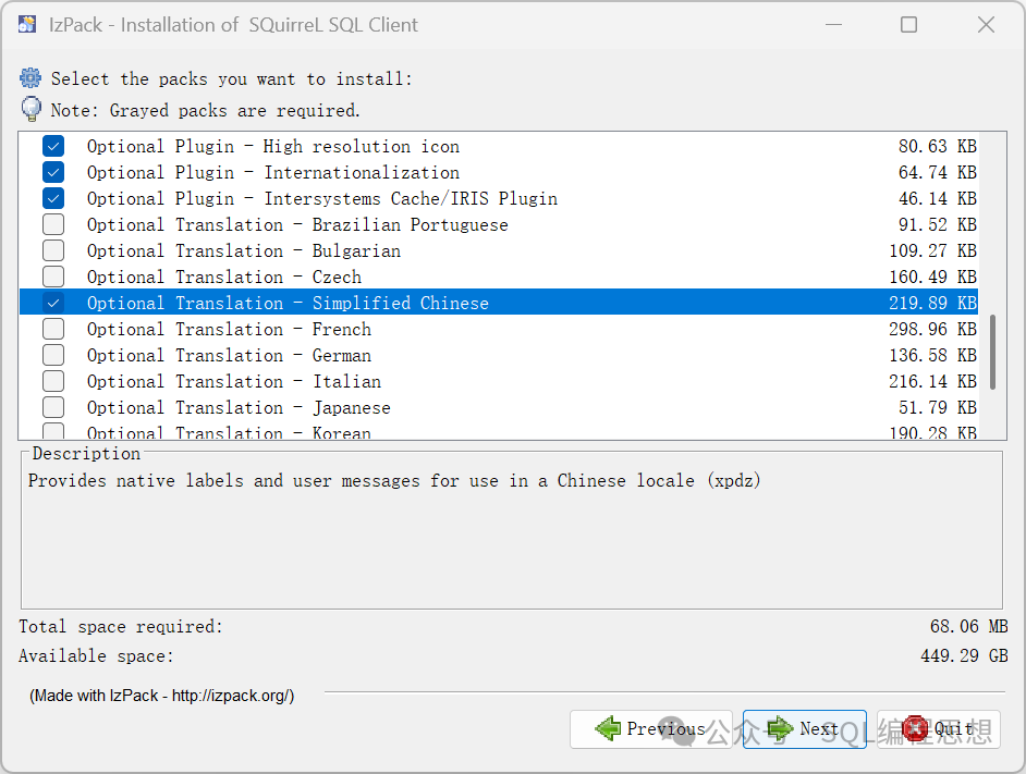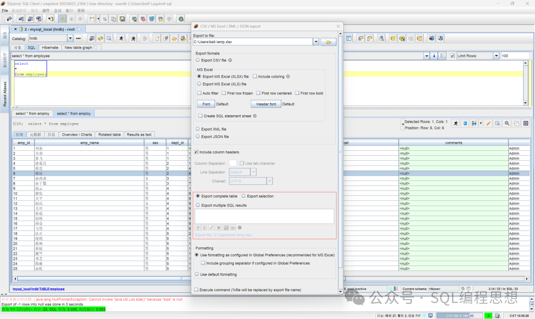 输入以下网址打开官方下载页面: https://squirrel-sql.sourceforge.io/index.php?page=home#installation 选择对应的操作系统和软件版本(稳定版或者快照版)进行下载。然后双击下载的 jar 文件进行安装: 在安装页面可以勾选各种数据库扩展插件和中文语言支持。 安装完成后执行 squirrel-sql.bat(Windows)或者 squirrel-sql.sh(Linux、macOS)脚本启动程序: 连接数据库下面我们以 MySQL 为例介绍如何连接数据库。 首先,点击页面左侧“驱动程序”标签,找到 MySQL Driver 配置: 然后添加 MySQL 数据库的 JDBC 驱动文件路径(官网可以下载),点击“列出驱动程序”按钮,最后点击“确认”完成驱动配置。 接下来通过别名连接到一个 MySQL 服务器,选择页面左侧的“别名”标签,点击“+”新建别名(连接): 输入 JDBC 连接串,点击“测试”进行验证,点击“确定”进行保存,或者直接点击“Connect”进行连接: 接下来就是数据库开发和编写 SQL 语句了。 阅读原文:https://mp.weixin.qq.com/s/6oD7pxlEIO08niGM7aP0cQ 该文章在 2025/7/1 21:06:42 编辑过 |