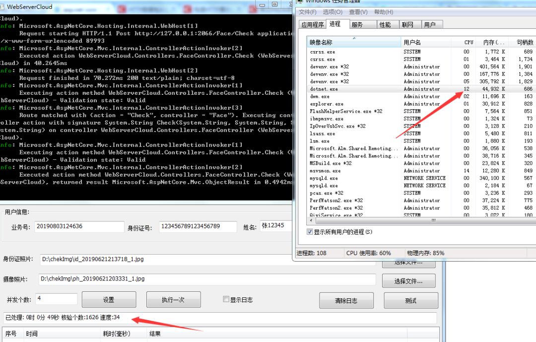 同时与ASP.NET Core处理效率做了对比,结果出乎意料。我的服务器性能是ASP.NET Core的10倍。对于此结果一开始我也是不相信,经过多次反复测试,事实却是如此。此结果并不能说明我写的服务器优于ASP.NET Core,只是说明一个道理:合适的就是最好,高大上的东西并不是最好的。