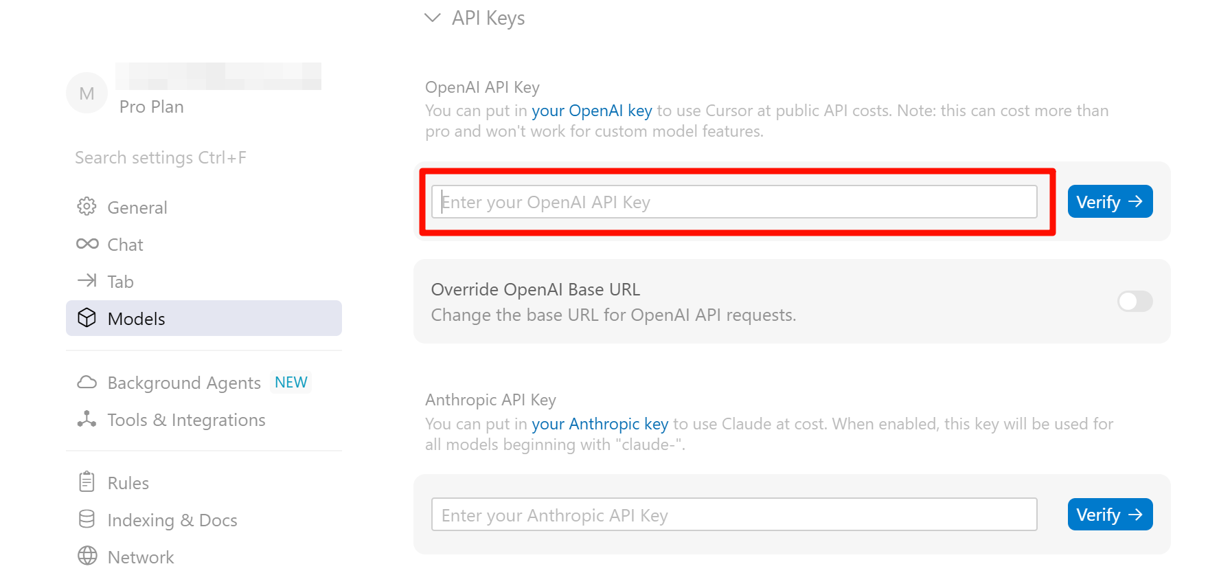 效果如下: 可以看到,效果差了很多,我原型 UI 的截图如下: 这是我随便找的一张图片作为例子,可以明显看出,先提取一份 JSON 文件,然后再让 Cursor 生成代码,效果要好很多。 为什么这种先提取 JSON 文件再生成代码的方法很有效?因为当任务涉及精确、结构化、无歧义的数据时,JSON 让模型理解更清晰,处理更高效,生成的结果也更稳定。 以上就是免费的方法。 接下来是付费的方法。 如果你对 UI 要求比较高,比如需要反复修改,那我推荐直接用 我一般会在需要大量生成 UI 时订阅 v0,一个月 20 美金,这个月把需要的 UI 全部生成完,然后就可以退订。 订阅后去后台生成 API Key,然后在 Cursor 中调用 v0 模型即可。 在 Cursor 模型设置中,把 v0 的 API Key 填进去,v0 模型是符合 OpenAI API 规范的,所以直接选择 OpenAI 模型即可。 实际使用时,你在对话中用的是 OpenAI 模型,但后台用的其实是 v0 模型。 好了,这就是免费和付费的两种方法。 最后再推荐两个动画工具:Framer Motion 和 React Bits,也都是很棒的选择。 你可以把 React Bits 中动画代码直接粘贴到 Cursor 中,让模型帮你集成即可。