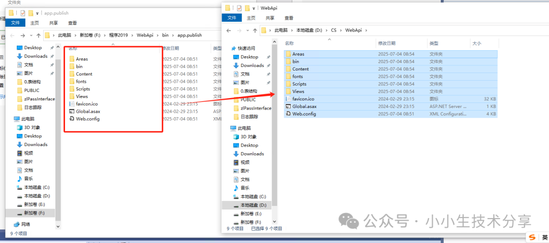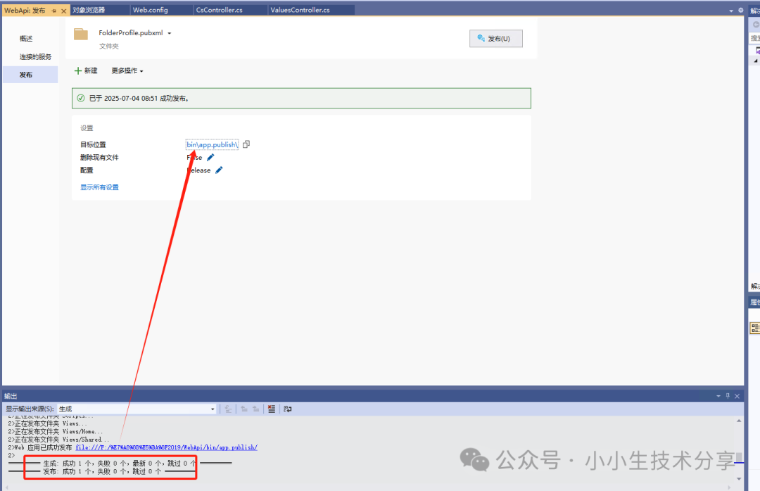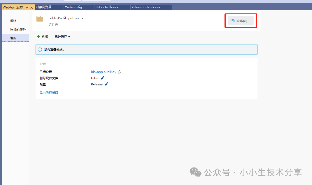 1.右键工程,点击发布2.选择文件夹,然后文件夹位置默认就行,点击完成3.然后点击发布二.部署到IIS1.发布成功后,点击目标位置,打开发布文件位置2.复制里面文件,到发布的文件夹里面3.打开IIS ,添加网站,物理路径选择上一步拷出来文件位置,端口不重复就行,然后点击确认4.点击浏览,打开默认浏览器,就可以显示对完接口了,然后用postman就可以调试了