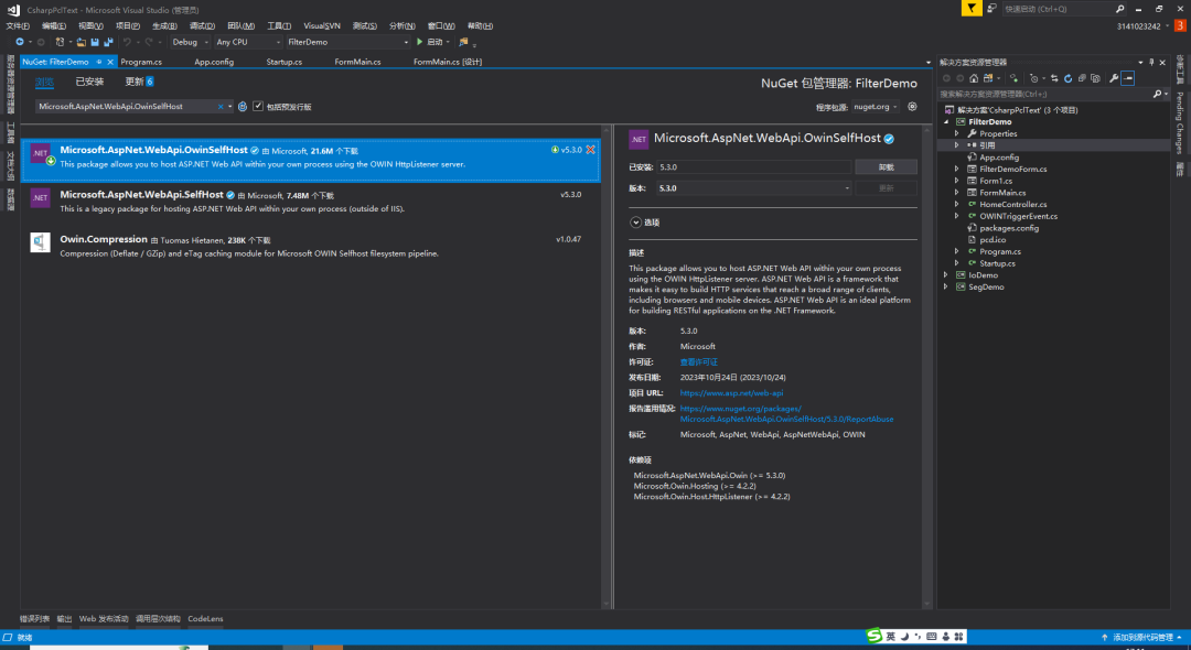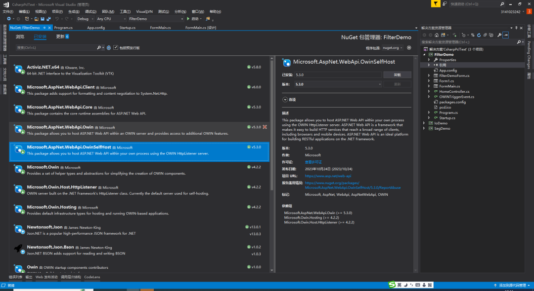 NuGet安装Microsoft.AspNet.WebApi.OwinSelfHost