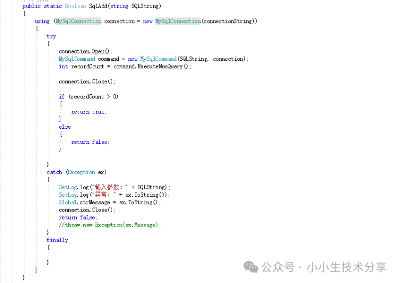 第三步执行 使用MySqlCommand类 执行数据库执行的 SQL 语句