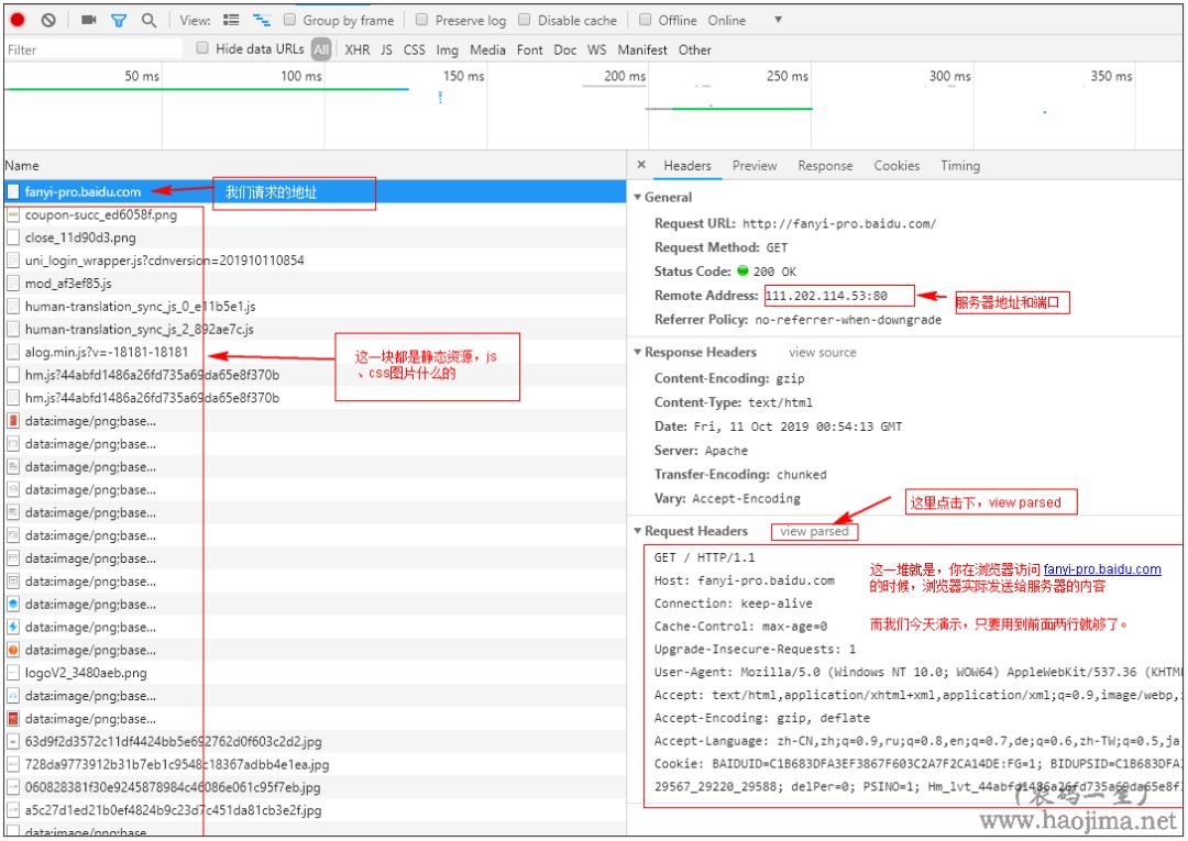 具体协议这里就不说了,我们先F12看看浏览器的请求报文,然后依葫芦画瓢试试,以http://fanyi-pro.baidu.com为例。(现在找个非HTTPS的地址也是不容易了)