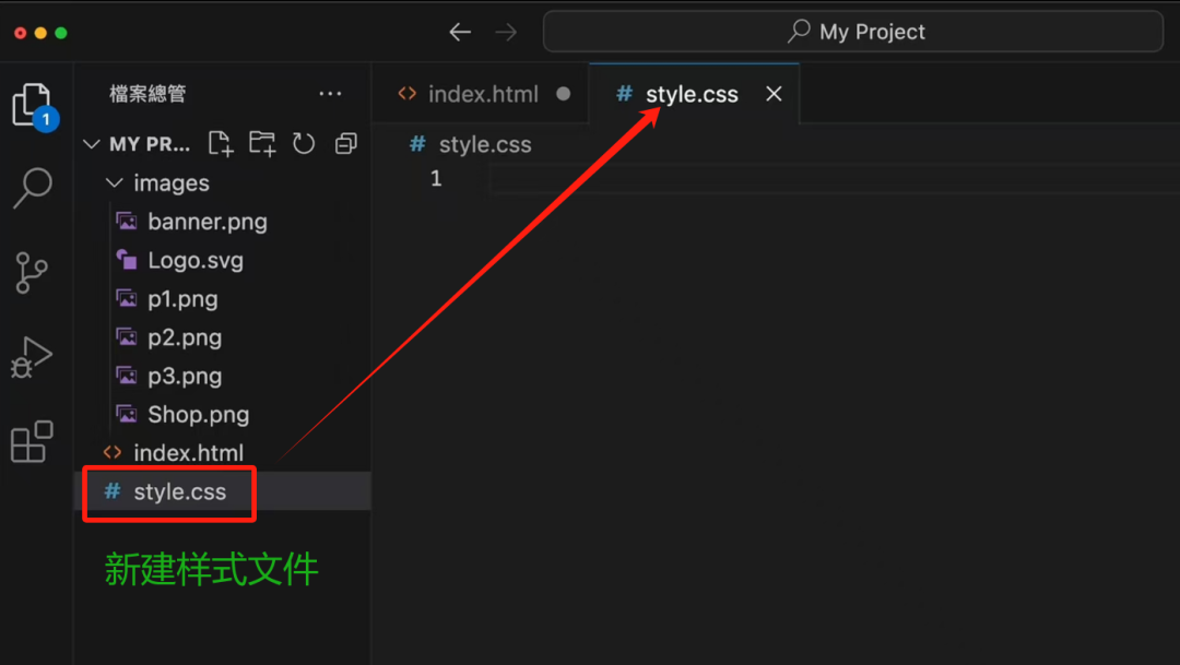 1. 创建CSS文件,在vscode左侧项目目录,单击右键新建文件(如styles.css)
