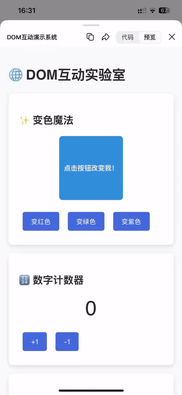 💡 重要性:DOM 是网页变成动态应用的核心枢纽,没有它 JavaScript 无法修改页面。 超直观案例演示: DOM的真实应用场景 1.购物车动态更新 点击"加入购物车" → DOM修改右上角数量显示 2.表单即时验证 输入密码时 → DOM实时显示强度提示 3.单页应用跳转 点击导航菜单 → DOM替换内容区,无需刷新页面 4.动态加载内容 滚动到页面底部 → DOM自动加载新内容 💡 一句话总结DOM是浏览器内存中的动态网页遥控器,JavaScript通过它让静态网页"活"起来,每个点击/滑动/输入都能触发实时变化。 阅读原文:原文链接 该文章在 2025/8/4 18:21:51 编辑过 |