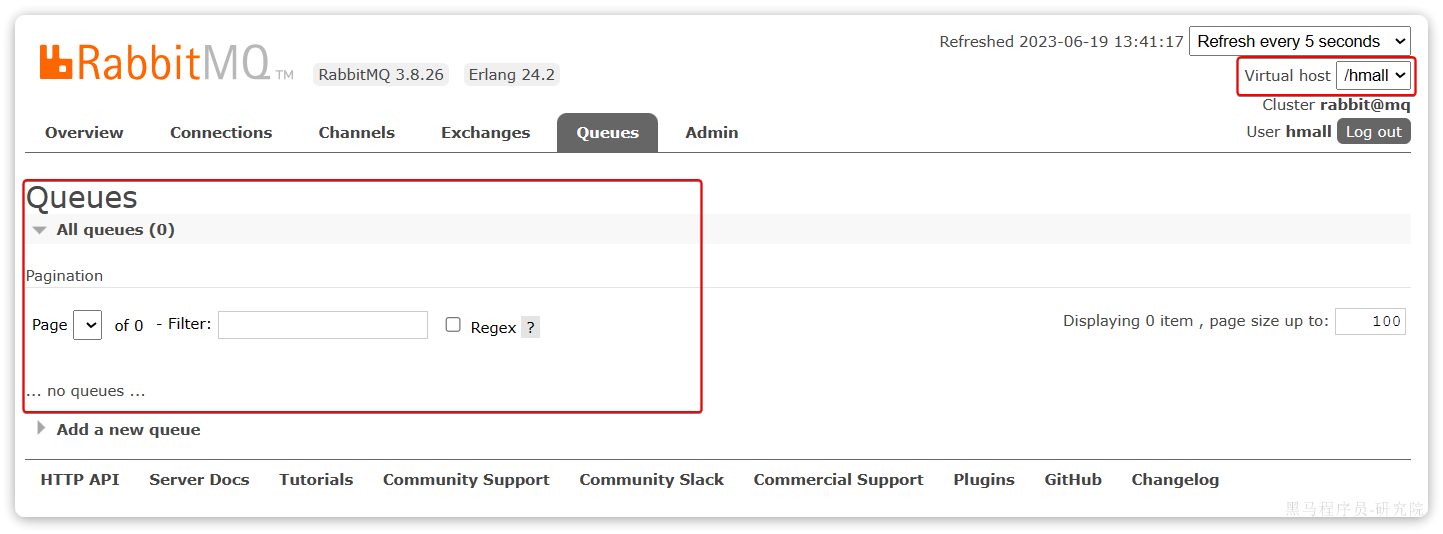 然后再次查看queues选项卡,会发现之前的队列已经看不到了: