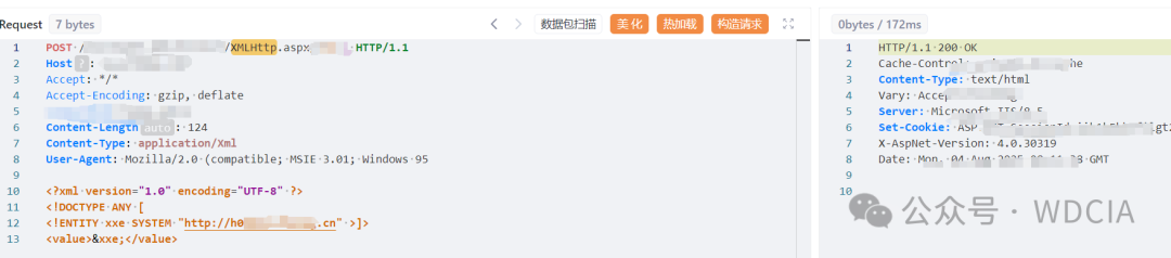 金和OA C6 XMLHttp.aspx 接口处存在XXE漏洞,它可以允许攻击者利用 XML 解析器的漏洞来执行任意文件读取、远程文件包含、端口扫描等攻击,从而导致敏感信息泄露、拒绝服务,甚至远程代码执行等严重后果