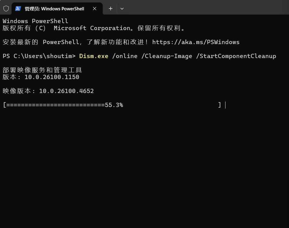 既然不能随便删除 WinSxS 目录里面的文件,那有没有可靠的办法缩减这个目录的大小呢?答案肯定是有的,可以使用运行在管理员模式上的命令提示符或 PowerShell,执行以下命令: