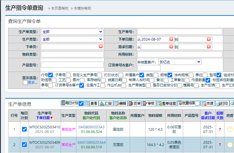 点晴模切ERP-日生产计划勾选后显示与所选的不同