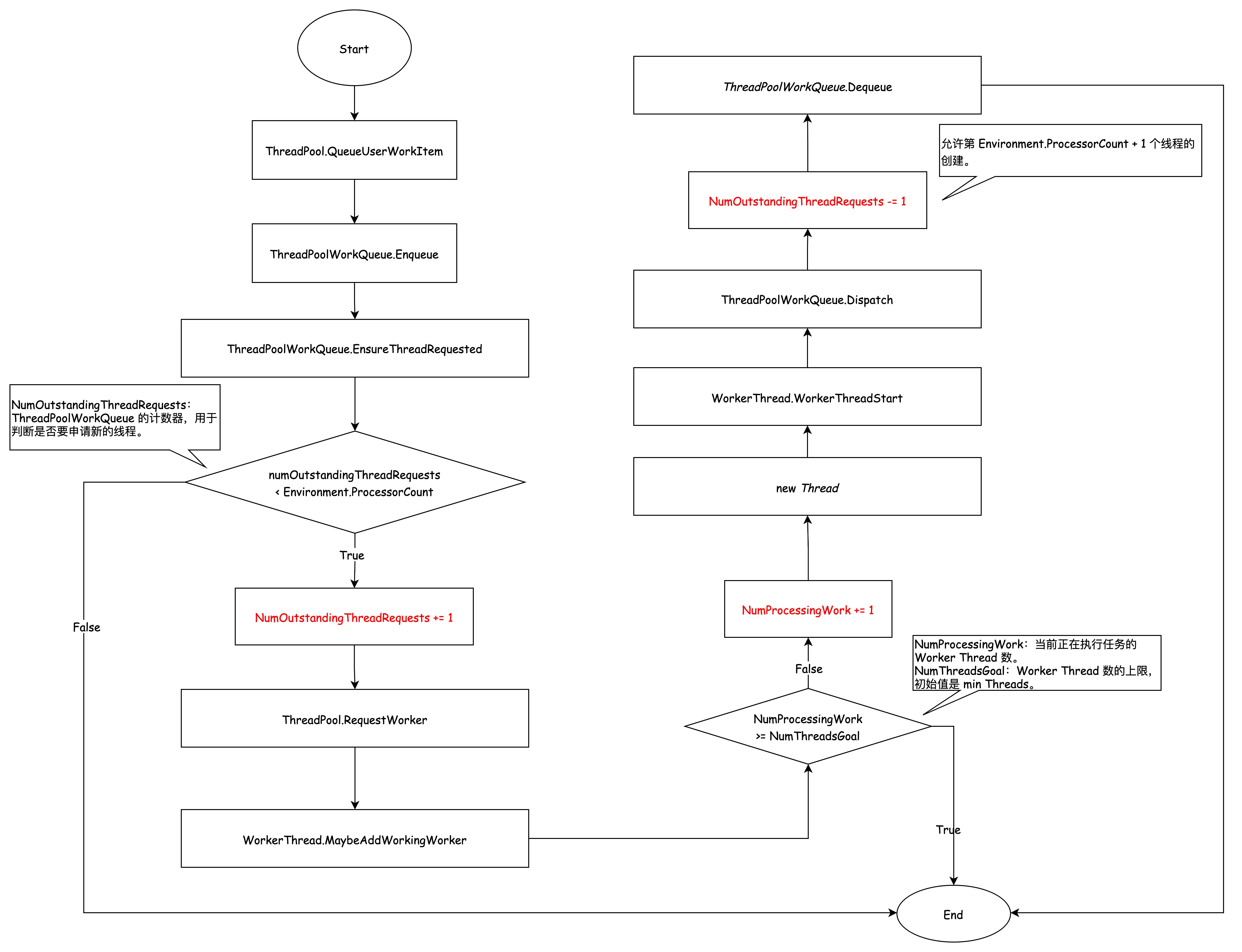 的判断条件),就设置新的 NumThreadsGoal = NumProcessingWork + 1,并调用 WorkerThread.MaybeAddWorkingWorker