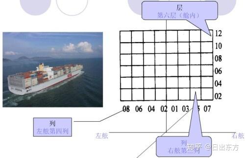 通常用箱位号表示每个集装箱在船舶上的准确位置,该箱位号由6位阿拉伯数字组成。这6位数字反映了箱子在船舶上的本维空间坐标。前2位表示集装箱的排号(行号),中间2位表示集装箱的列号,后2位表示集装箱的层号。