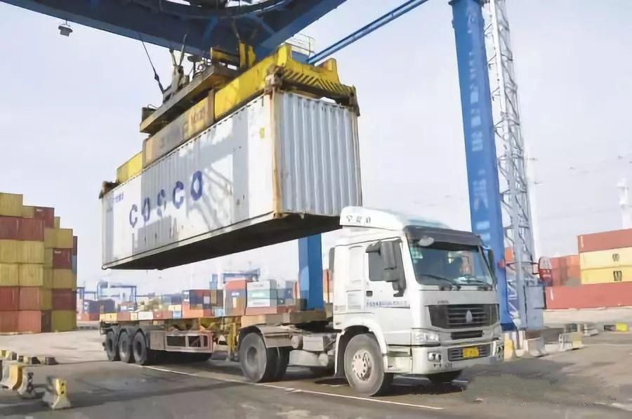 主要是指在港口用于集装箱堆垛和短距离水平运输的机械,常用的有牵引车、挂车、跨运车等。下图就是集装箱牵引车正在作业。
