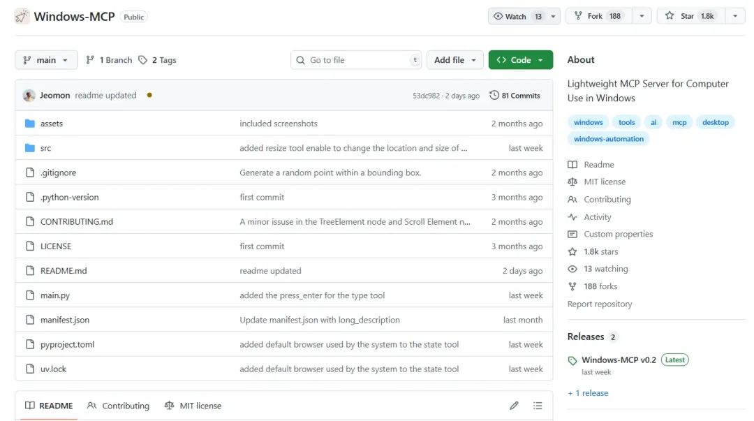 Windows-MCP是啥今天给大家介绍一个超酷的开源项目 - 支持从 Windows 7 到 Windows 11 的所有系统,不管你电脑是老款还是新款,都能用上。 ![]() ![]() 功能特色